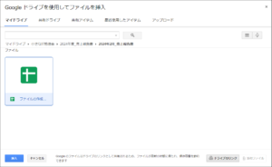 8. Googleドライブにあるファイルを添付する場合は「ドライブを使用してファイルを挿入」をクリックし、挿入するファイルを指定します(Googleドライブにあるファイルへのリンクが作成されます)