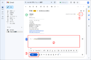 「返信」ボタンをクリックすると「返信用のフォーム」が開きます、返信を入力して「送信」をクリックしてください