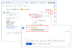 「︙(三点リーダー)」をクリックし、ポップアップの「全員に返信」をクリックすると、「送信者」と「CC」のメンバーに返信できます
