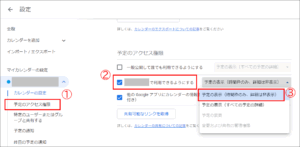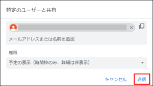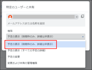 - 権限「予定の表示(時間枠のみ、詳細は非表示)」を選択します