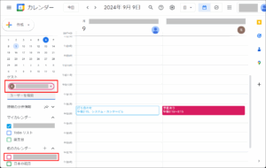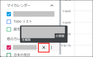 - 公開設定されたカレンダーの「✕」クリックすると、「他のカレンダー」から非表示になります(公開設定は残っていますので、ゲストの予定検索は可能です)