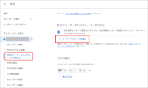 - 「特定のユーザーまたはグループと共有する」から「+ ユーザーやグループを追加」をクリックします