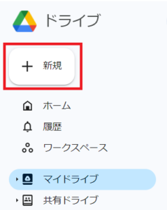 - Googleドライブの画面左上の「+ 新規」をクリックします