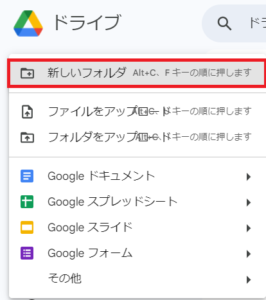 Googleドライブから、フォルダやGoogleアプリケーションのファイルを作成できます。