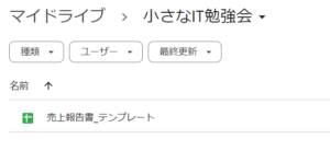 - コピーしたいスプレッドシートを保存してある、Googleドライブのフォルダを開きます
