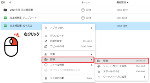 - 移動したいファイルを選択し、右クリック → 整理 → 移動 をクリックします