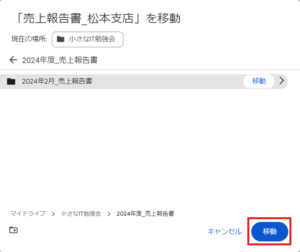 - 移動先のフォルダを選択後、「移動」をクリックします