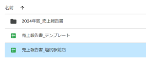 - 「コピー元のファイル名+のコピー」というスプレッドシートが作成されます