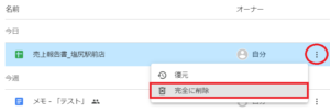 ここでは、作成したスプレッドシートをフォルダに移動する方法を例に説明します。