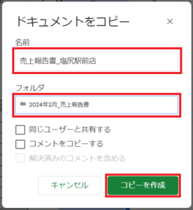 ③ 「コピーを作成」をクリックします