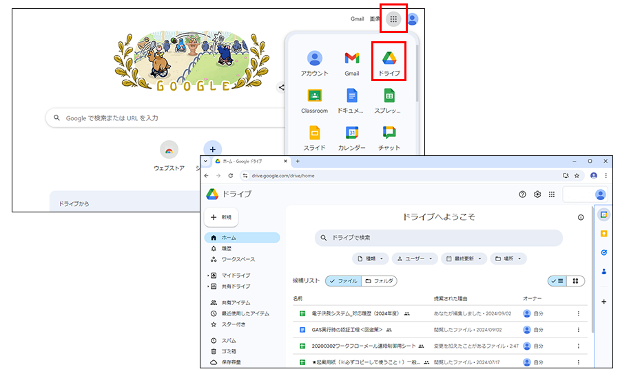 - ドライブからファイルをクリックすると、データの編集や閲覧の操作ができます