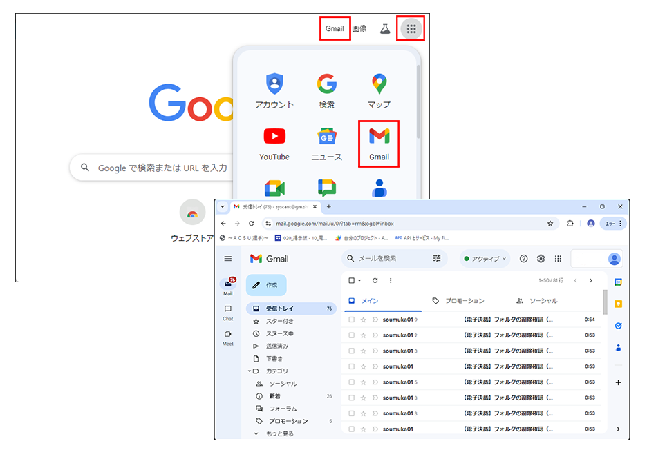 Gmail Gmailとは 2024.09.07 2024.10.18 Googleが提供しているメールサービスで、Webブラウザ から操作します。データは インターネット上の Google Workspace に保存されます。iOS用、Andoroid用 のアプリも提供されているので、デバイスの種類を問わずに利用することができます。 主な特徴 Webブラウザ上でメールの送受信ができます スマホ・タブレットでも利用可能です スケジュールをはじめ、他の Google サービスとの連携がスムーズにできます Gmailの基本操作