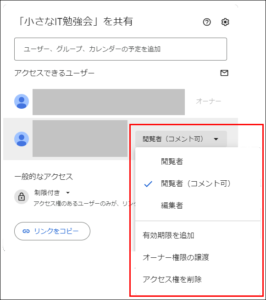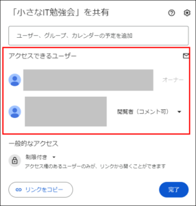 「リンクを知っている全員」は選択しないようにしてください(情報漏洩に繋がります)