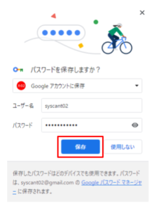 - Webサイトでパスワードを入力すると「パスワードを保存しますか?」と表示されるので「保存」をクリックします