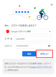 - パスワードを保存したくない場合は「使用しない」をクリックします