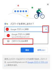- 現在使用しているデバイスのChromeだけにパスワードを保存したい場合は「このデバイスにのみ保存」を選択して「保存」をクリックします