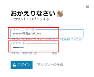 - パスワードを入力するページに遷移すると、ユーザー、パスワードが設定された状態で開きます