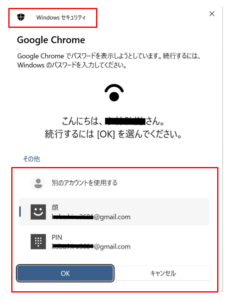 - Windowsセキュリティが表示されたら、Windowsのログイン方法 で認証します