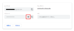 - 「目のマーク」をクリックすると、登録されているパスワードが表示されます