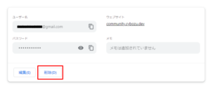 - 「削除」をクリックすると、登録されているパスワードが削除されます