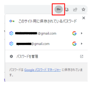 - アドレスバーの「鍵マーク」からでも、パスワードの確認・変更・削除 が可能です
