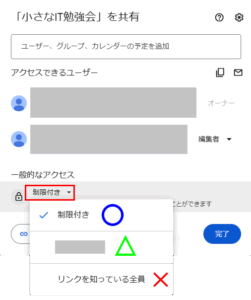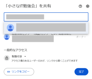 「リンクを知っている全員」は選択しないようにしてください(情報漏洩に繋がります)