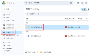 共有されたプレゼンテーションは、「Googleドライブ」>「共有アイテム」に表示されます(こちらをクリックしても開きます)