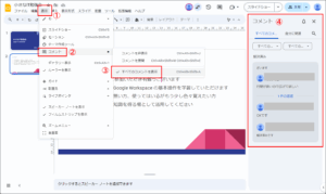 6. 解決されたコメントは、「表示」>「コメント」>「すべてのコメントを表示」で再表示できます。