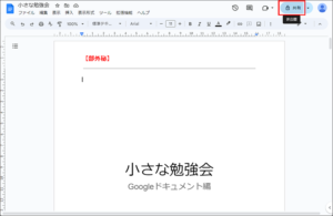 1. 共有する文書を開き、右上の「共有」をクリックします