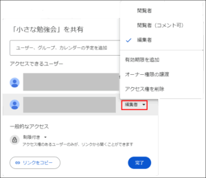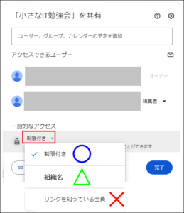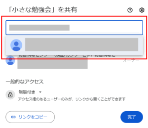 「リンクを知っている全員」は選択しないようにしてください(情報漏洩に繋がります)