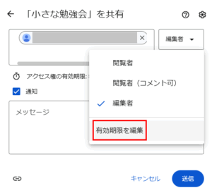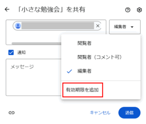 4.「有効期限を追加」をクリックすると、アクセス権の有効期限が設定できます