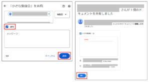 6.「通知にチェック」を入れて「送信」をクリックすると、権限を設定したユーザーにメールが送信されます