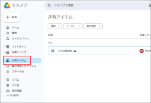 共有された文書は、「Googleドライブ」>「共有アイテム」に表示されます(こちらをクリックしても開きます)