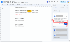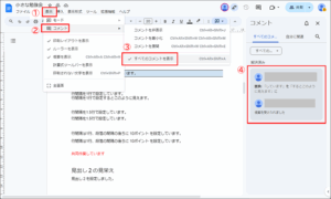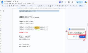 直接文書は修正しないが、修正点を記録しておきたい場合は、コメント機能を使用します。
