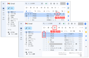 削除したメールは「ゴミ箱」に移動し、30日後に自動削除されます
